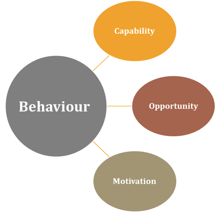 In order to diagnose the barriers and drivers for specific target behaviours, we can borrow a framework from human psychology with some adaptations.