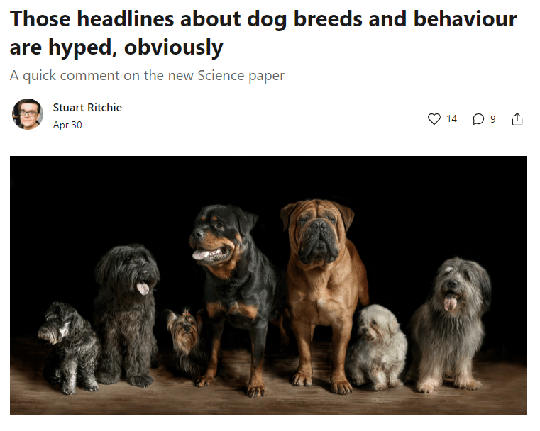 Here is also one interesting critique from someone who recently published a book on quality of scientific research: https://stuartritchie.substack.com/p/dog-breeds