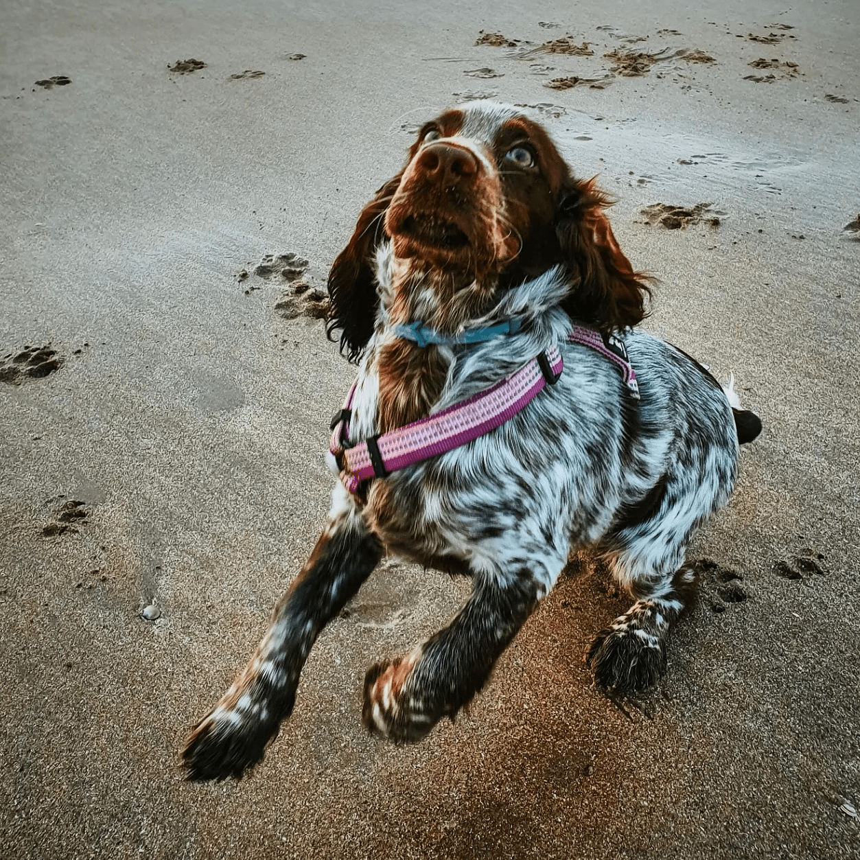 We spend months and months struggling with this and again our dogs learn big lessons: “being near the human is often unpleasant” (because we restrict them with various tools like haltis – common advice on spaniel groups) and “humans = no fun when outside”. In short, we assume loose leash walking is a pre-skill to off-leash skills when it’s actually the OPPOSITE.