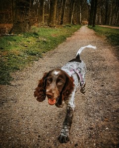 Most pictures of Grace in the first year were like this – I considered it success if she was actually IN the picture, including head, and not a blur 😂 She was off leash from the third day after she came to live with us aged 16 weeks and she has been that way for roughly 90% of her life. We have never had problems with her venturing far away. Of course, you could say having an older dog helped with that, but even when Nell went to investigate something or even took off after a pheasant, Grace has always stayed close.