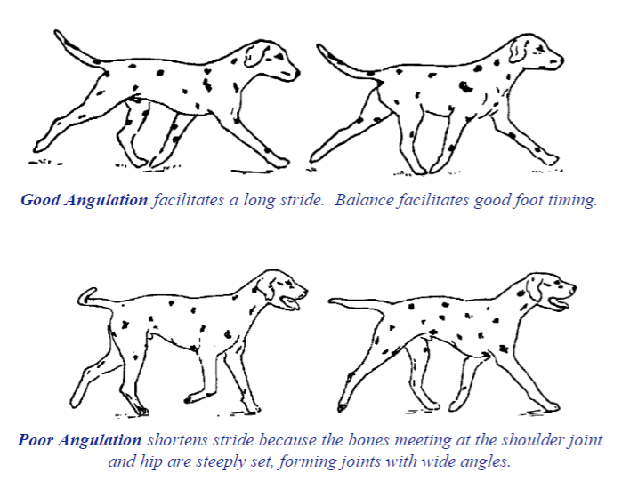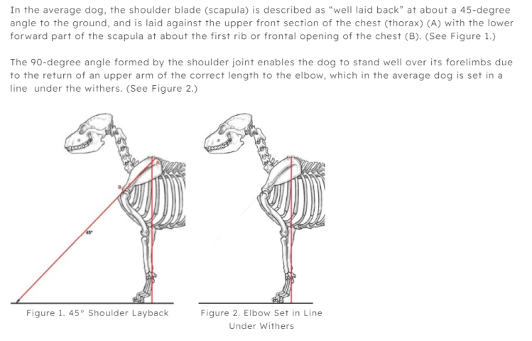 A well-angulated shoulder (around 90 degrees between scapula and humerus) helps the dog move efficiently while absorbing impact, protecting its joints from excessive wear and preventing conditions like arthritis or elbow dysplasia.