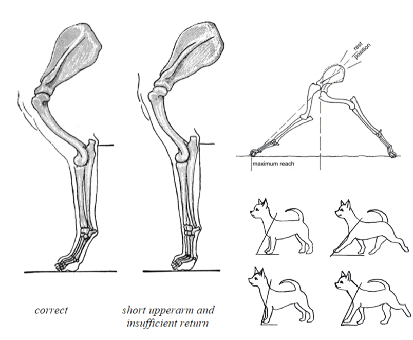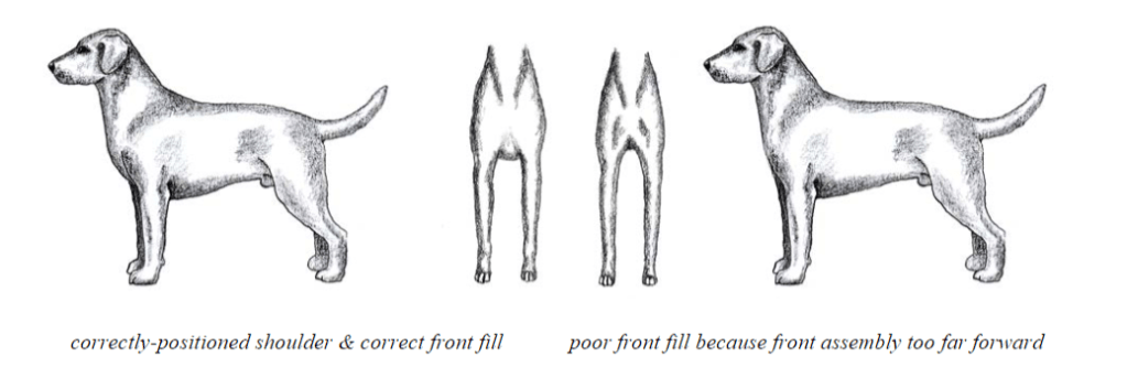 Additionally, shoulder placement plays a role. Since most of the dog’s weight is supported by the front limbs, a poorly placed shoulder assembly disrupts its center of gravity, weakening the joints as they try to compensate. This also causes insufficient muscle development, leading to an inverted V-shaped body—a structural fault.