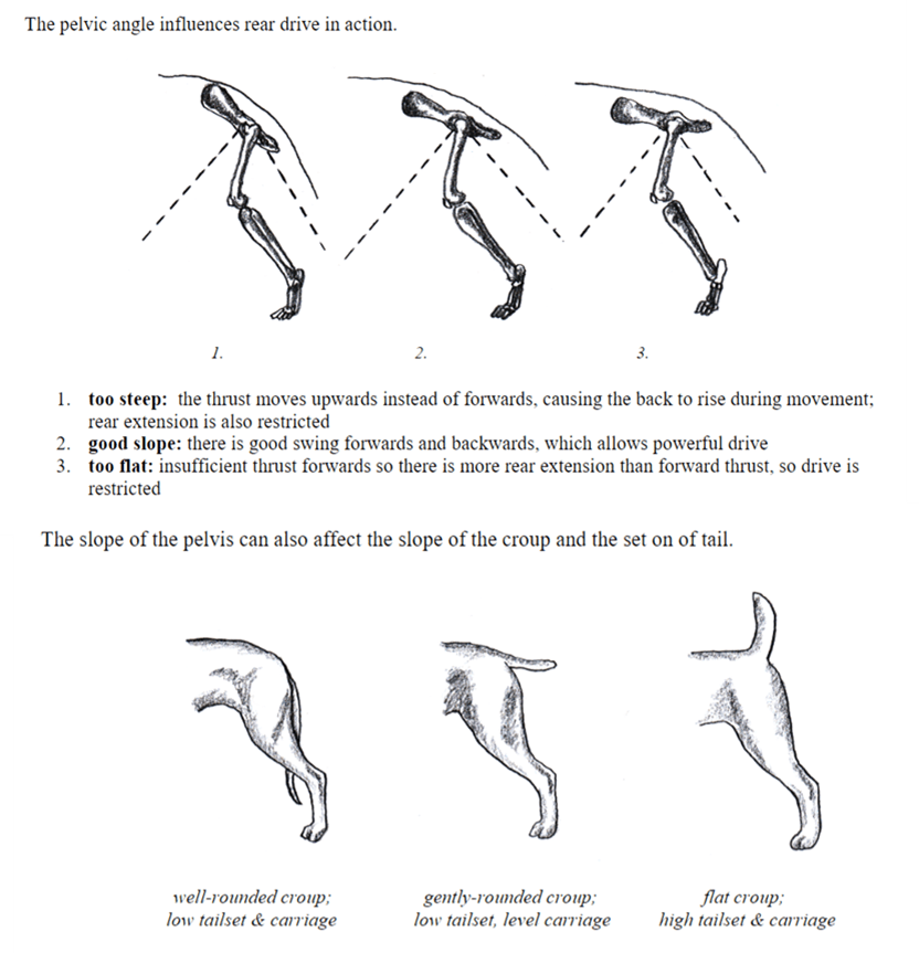 A slightly sloped, well-formed pelvis supports strong hindquarters, allowing the dog to generate power efficiently during running, jumping, and quick turns. This proper pelvic structure ensures even force distribution across all limbs, reducing stress on both the front and rear limbs and preventing injuries.