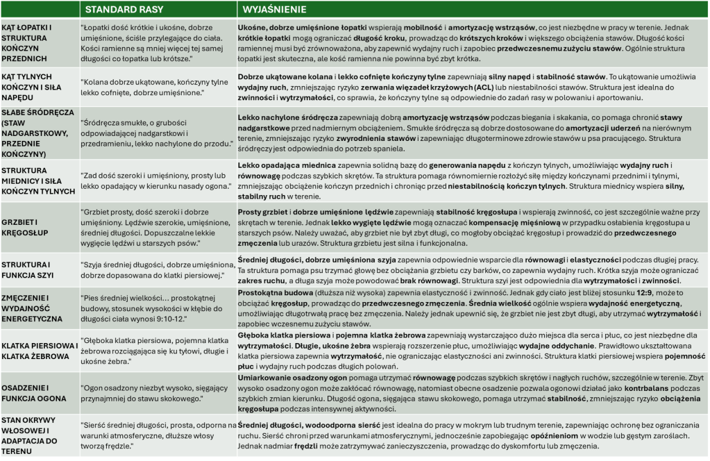 APPENDIX: Extracts from Polish Hunting Spaniel breed standard to illustrate these ideas