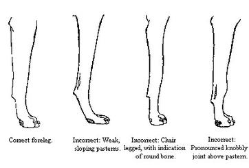 Weak or excessively upright pasterns fail to absorb the shock of running or jumping properly, leading to overloading of the carpal joints. This can result in carpal hyperextension, sprains, and long-term joint deterioration. Spaniels frequently work on uneven terrain, making strong pasterns essential for shock absorption.