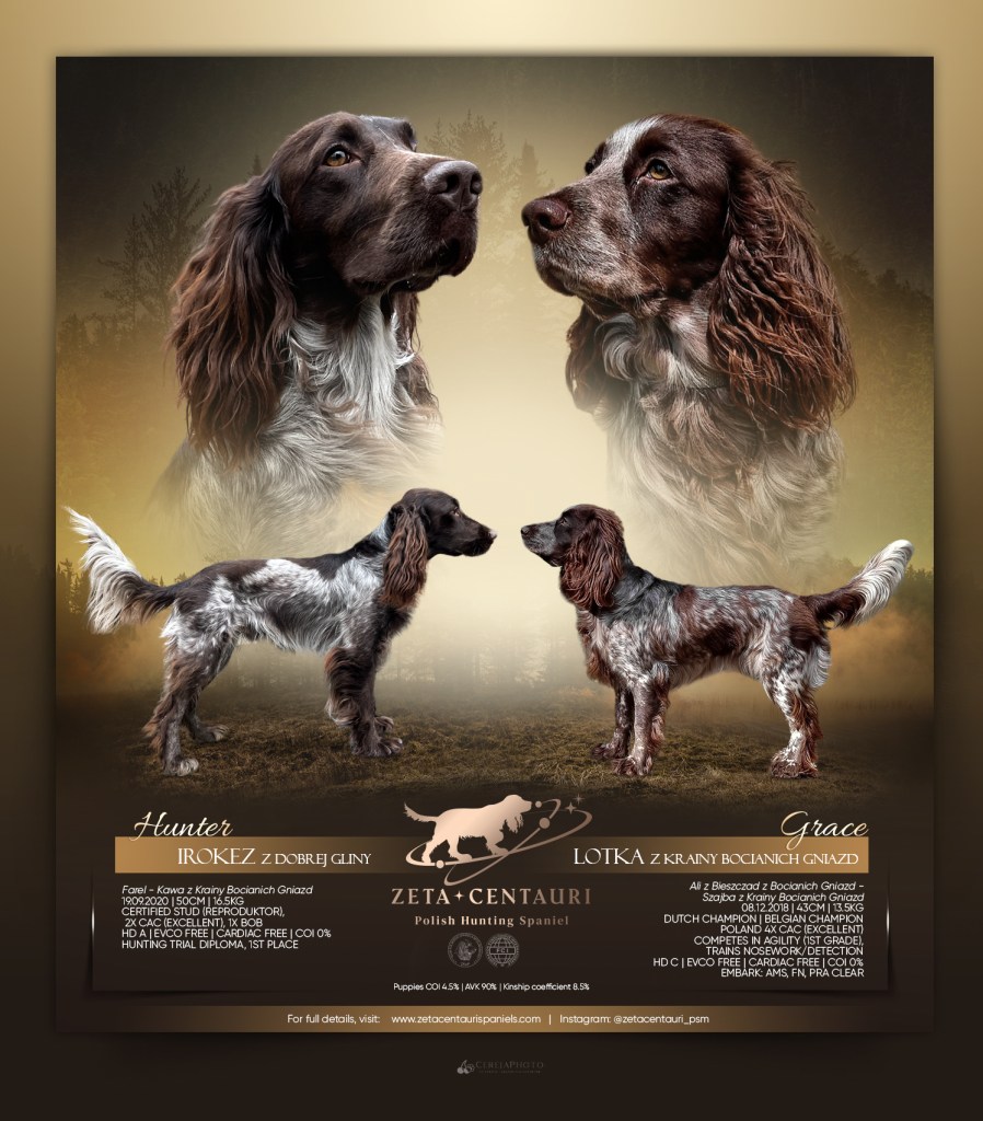 We are a small kennel breeding Polish Hunting Spaniels with the first litter born on February 26, 2023.