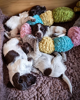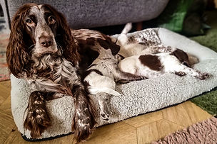 Although puppies typically leave for their forever homes at the age of 8 weeks, most of ours stayed longer because they were moving to other European countries, so we also had the responsibility of ensuring adequate socialisation in the critical development window before it closes around 15 weeks. So, in order to habituate the puppies to a wide range of real-world environments, you would find us visiting street markets. sports competitions and beaches with a trolley of puppies – and of course several visits to the airport to help one of our puppies prepare for her flight to Switzerland.